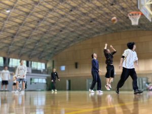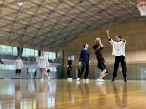 体育館を借りて、バスケを行いました。