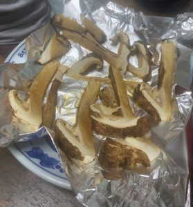 リビングでキノコ狩り・キノコ料理の動画を毎日見続けていると、親が1.5Kgの松茸を買ってくれていました。