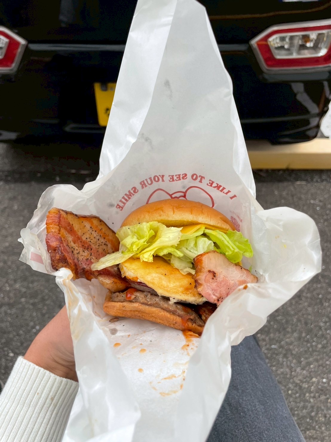 朝はホテル近くのお店へ徒歩で向かい、念願の佐世保バーガーを3人で堪能。