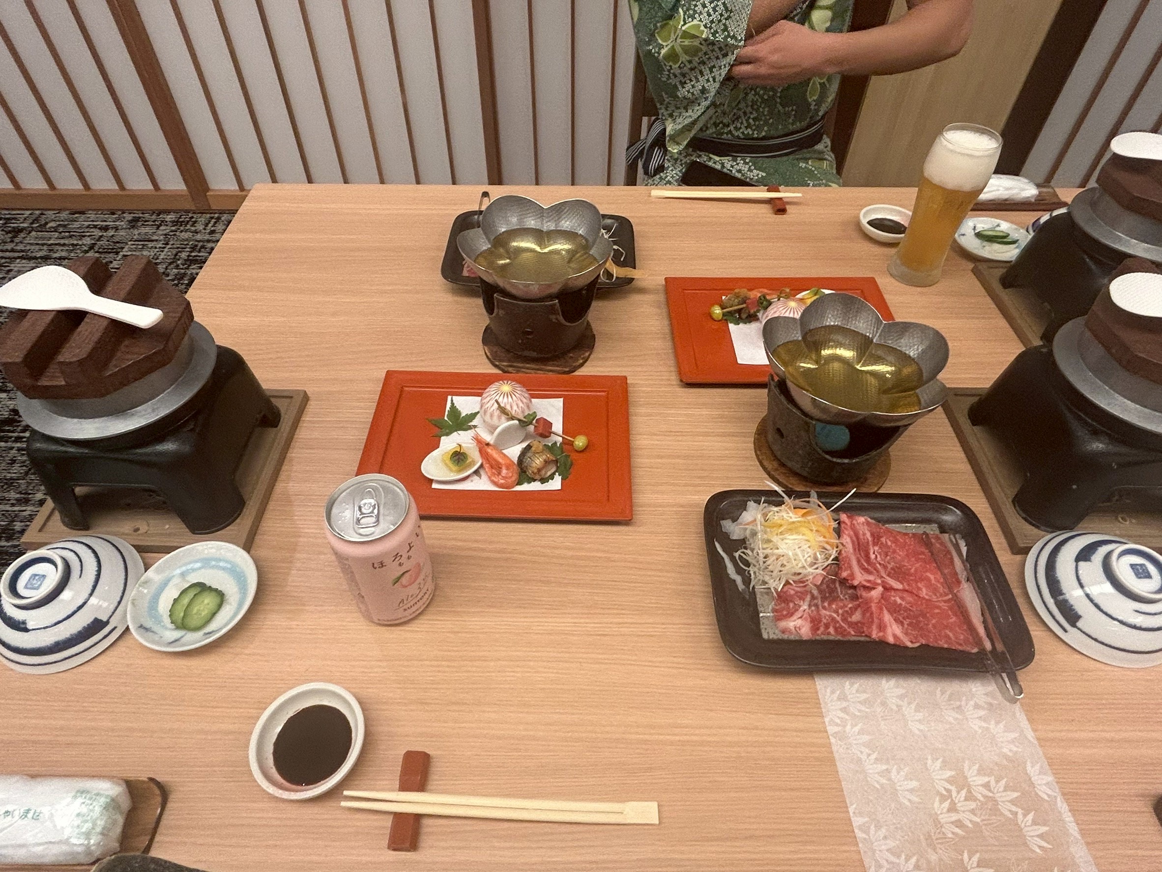 ホテルのコース料理はどれも美味しく、特にしゃぶしゃぶのお肉が絶品でした。