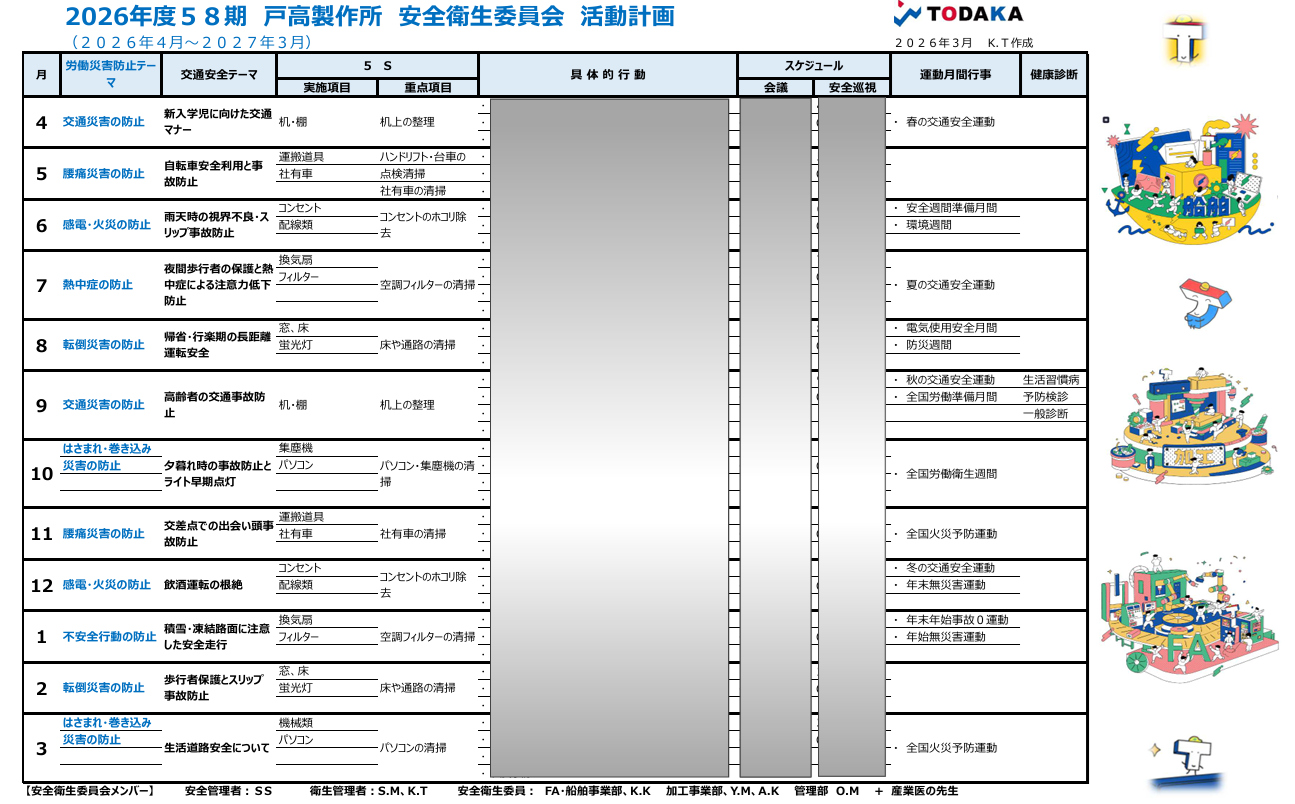 2026年度の、安全衛生活動計画が出ましたのでお知らせいたします。