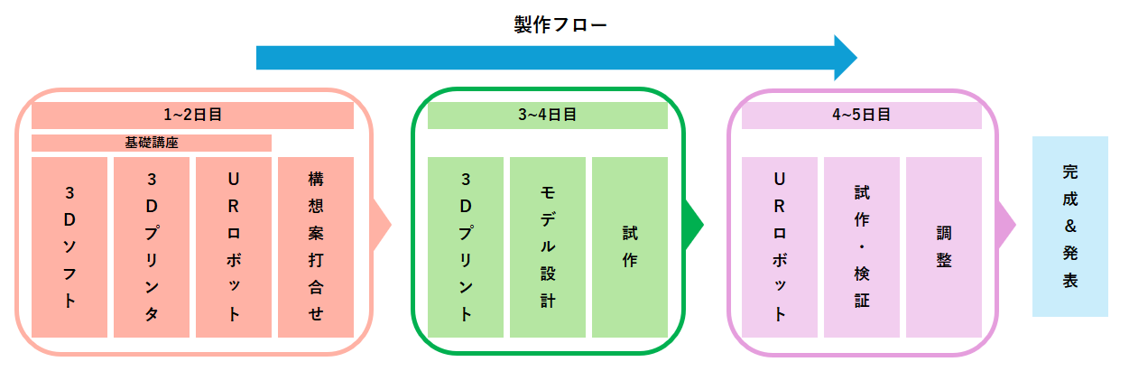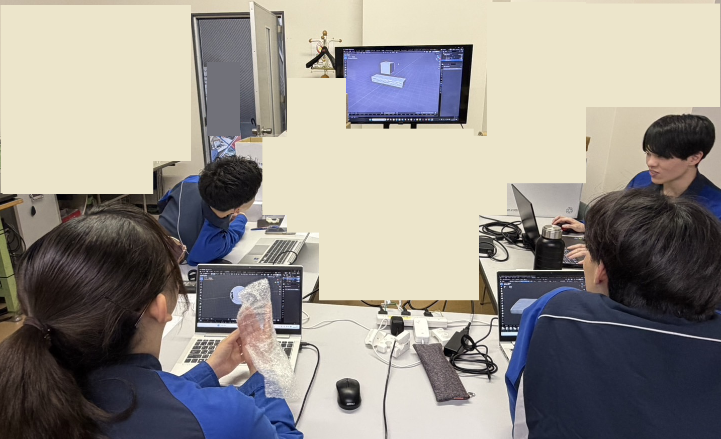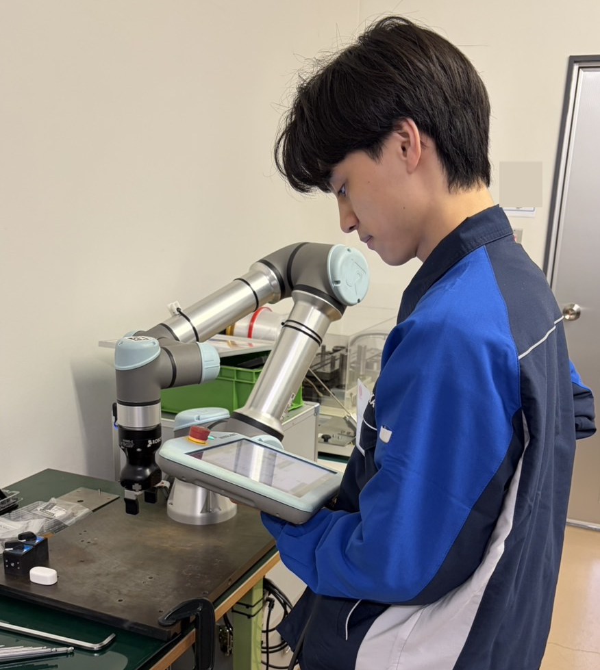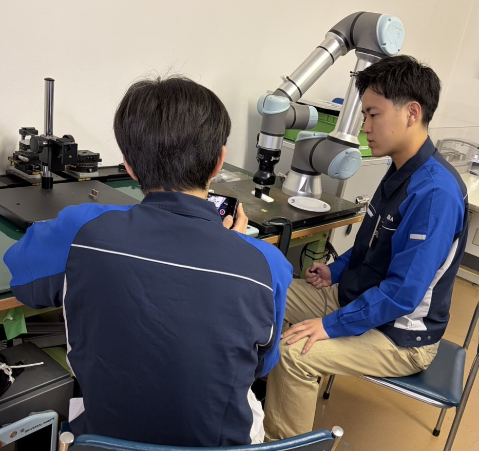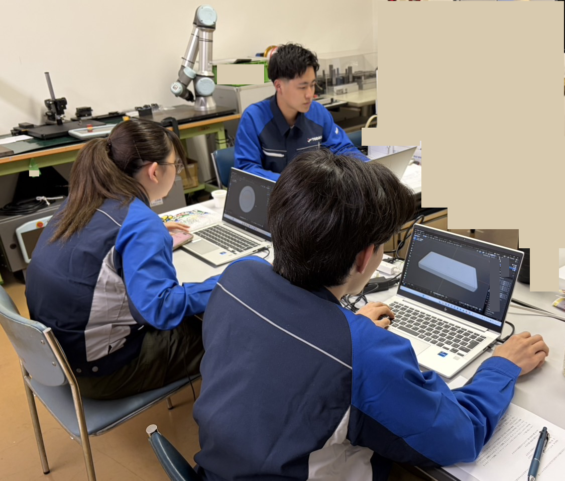 三名のチームでアイデアを出し合い、基礎講座から3Dプリンターによる部品製作、そしてロボットの協働作業プログラミングへと進められました。